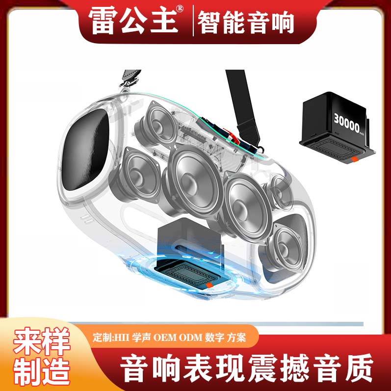 “来样制造 + OEM/ODM” 的模式,让这种 “潮玩音箱定制” 跳出了 “颜值与声效的矛盾”。不同于传统潮玩音箱 “声效劣质” 或便携音箱 “颜值普通” 的问题,雷公主的方案既保障了透明潮玩的视觉属性,又实现了多单元的饱满声效:户外场景选防水实用款,潮玩场景用灯效增强款 —— 定制不再是 “为颜值牺牲音质”,而是两者兼顾的年轻友好选择。