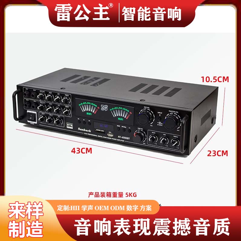 当功放成为「小型影音系统」的核心控制中枢,雷公主这款多功能专业功放,用「多接口配置 + 精准调控面板」的组合,重新定义了家庭 KTV、小型商演的「音效输出逻辑」—— 它不止是功率放大设备,更是能适配多场景需求的「声色中枢」,让 K 歌、播放、扩声等功能在小型空间里高效落地。