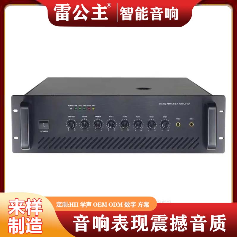 “来样制造 + OEM/ODM” 的模式,让这种 “混音功放定制” 跳出了 “专业与商用的矛盾”。不同于传统商用功放 “功能单一” 或专业混音台 “操作复杂” 的问题,雷公主的方案既保障了多通道混音的专业性,又实现了商用场景的便捷管控:商场选预设场景的简化操作版,专业会议室用全功能调音版 —— 定制不再是 “为专业牺牲易用性”,而是两者兼顾的商用友好选择。