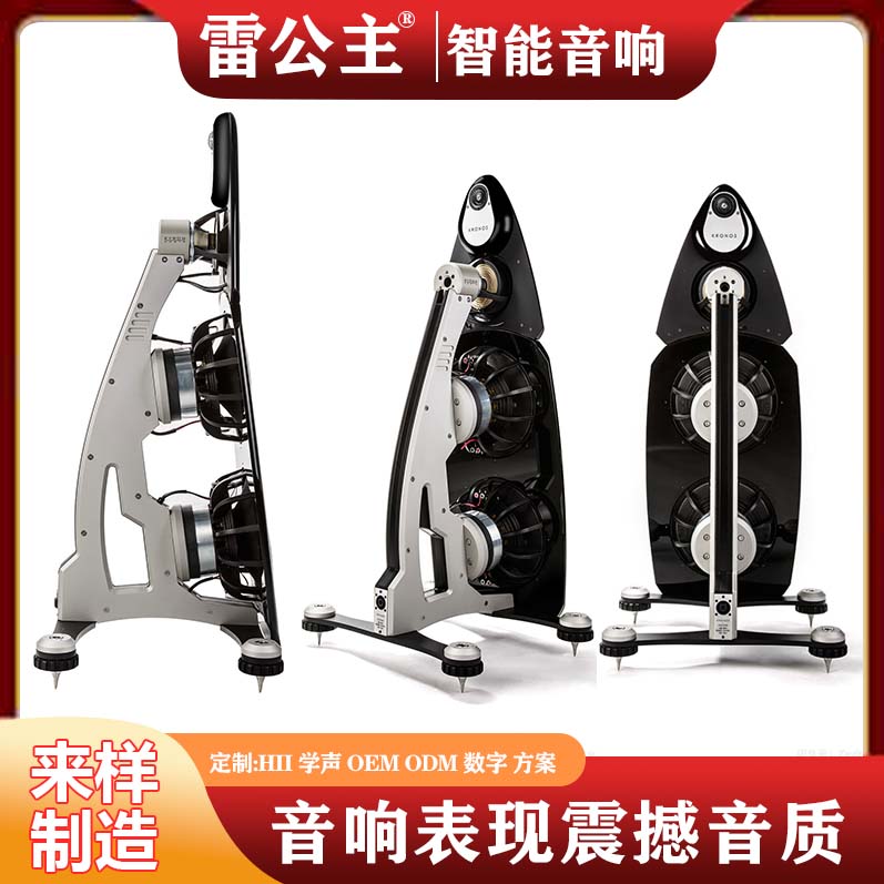 依托 “HiFi 声学 + OEM/ODM 数字方案”,雷公主旗舰系统支持高端定制:既可以调整单元材质(比如将高音单元改为钻石振膜)强化解析力,也能定制外观颜色(哑光黑、金属银等)匹配家居风格;甚至可根据用户的聆听空间尺寸,优化功放参数与音箱摆位方案。