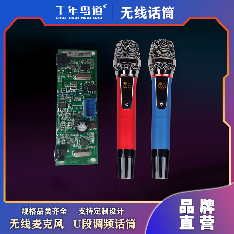 当会议室的有线话筒被线材绊住、KTV 的无线麦突然串频,一套 “稳、省、灵” 的拾音方案,恰是场景体验的 “隐形加分项”。千年鸟道 U 段调频无线话筒(含集成接收板),以 “模块化设计 + U 段抗干扰” 的组合,把专业拾音能力装进了灵活的系统里 —— 它既是设备厂商的 “集成利器”,也是场景用户的 “体验保障”。